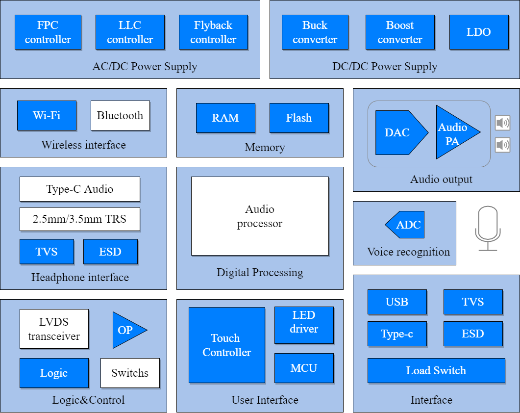 | PAM8406 | 音频功放 | DIODES | Po 2X5 W;Gain 24dB | SOP-16 | 3000 | 正常供货 | More… |